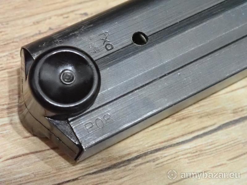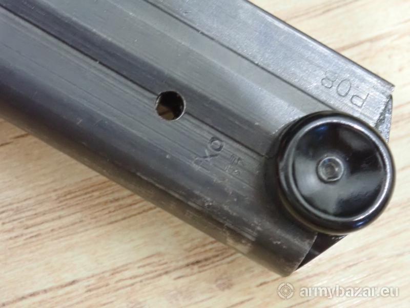 Opis: Oryginalny magazynek P08 ( frezowany ,kod fxo ,zakłady Haenel,odbiory WaA) Późna produkcja . Stan bardzo dobry.