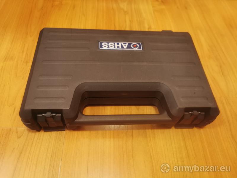 Opis: Oryginalne pudełko (walizka, kufer, etui, box, case) - na pistolet "AHSS". Wymiary: 30 x 20 x 6,5 cm. mail: bogumila_tasulis@op.pl ; tel. 506-053-924