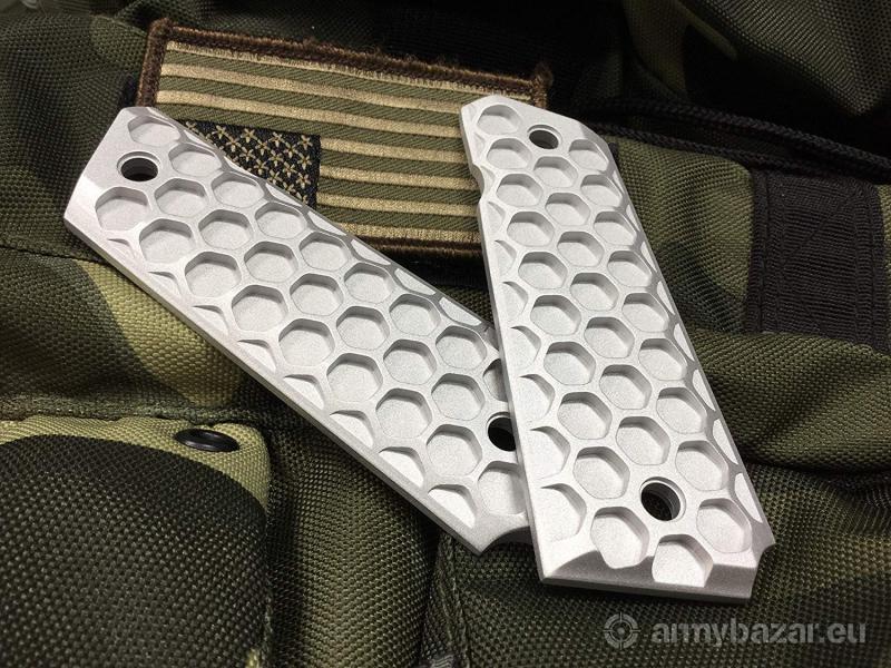 Opis: OKŁADKI CHWYTU K62-S do Colt 1911 i pokrewnych wykonane z ALUMINIUM na maszynach CNC o strukturze PLASTRA MIODU. NOWOŚĆ w kraju! Dostępne TYLKO u Nas. Okładki pasują do standardowych Coltów oraz ich klonów ze standardowymi magazynkami. W SPRZEDAŻY 2 WERSJE KOLORYSTYCZNE: CZARNE oraz SREBRNE. Stanowią IDEALNE połączenie z Naszym kompensatorem (dostępnym na Naszych innych aukcjach). DANE TECHNICZNE: Materiał: aluminium CNC Waga: 68 g Wymiary: 107 mm / 37 mm / 5 mm Pasuje do: Colt 1911 i pochodne - WSZYSTKIE kalibry: .38 / .45 / 9 mm