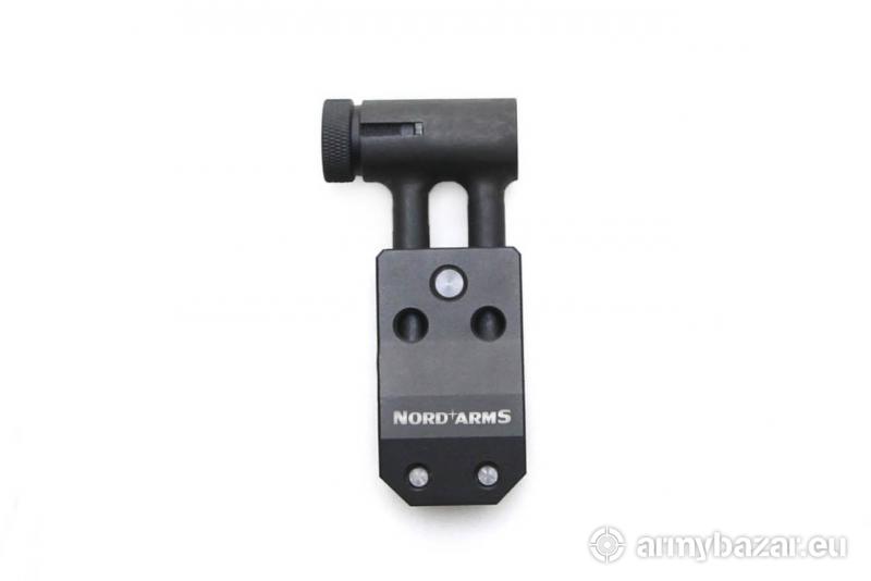 Opis: Osada muszki tunelowej na lufę 0,75" (typowa dla AR-15) Wysokość regulowana od 54mm do 74 mm mierzone od środka ośi lufy. Waga 135g. Bardzo stabilny zacisk na lufie, konstrukcja odporna na przypadkowe uderzenia.Możliwość instalacji standardowych insertów z broni sportowej 22 LR fi 17 mm