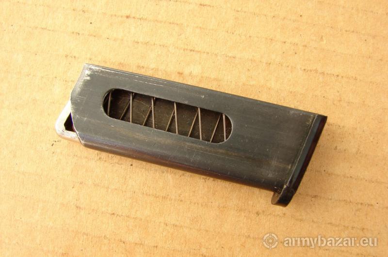 Opis: Przedmiotem sprzedaży jest oryginalny, 7-mio nabojowy magazynek do włoskiego pistoletu ARMI GALESI model 9 kal. 6,35 mm Browning (25 acp). Stan zachowania widoczny na zdjęciach, sprzedaję prezentowany egzemplarz. Cena 200 zł, wysłka 15 zł do paczkomatu inPost lub kurierem paczka48. Nie wysyłam za pobraniem.