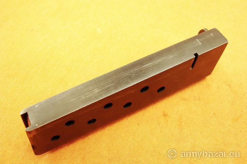 Opis: Przedmiotem ogłoszenia jest oryginalny 8-mio nabojowy magazynek do hiszpańskiego pistoletu ASTRA 600 600/43 kal. 9x19 mm Parabellum Luger. Pistolety te były podczas DWŚ dostarczane do 3 Rzeszy czyli nieistniejącego już państwa nazistów którzy okupowali biednych Niemców, po wojnie Hiszpania dalej realizowała ten kontrakt tym razem dla dobrych Niemców z West Germany. Stan widoczny na zdjęciach, sprzedaję prezentowany egzemplarz. Cena 400 zł, wysłka 18 zł paczkomat inPost lub 15 zł kurierem pocztex48. Nie wysyłam za pobraniem. (DE-72)
