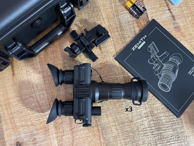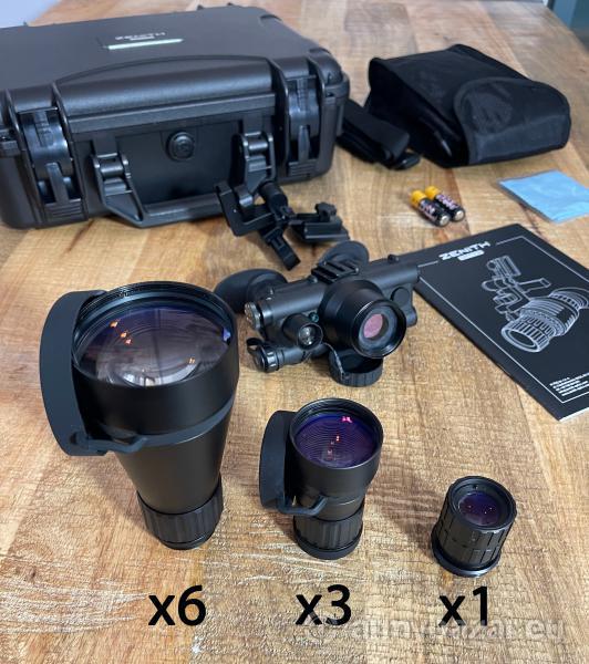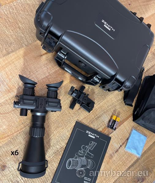 Opis: Zenith Optics Wolf-7 F136 to nowy produkt opracowany w oparciu o najnowszą technologię optoelektroniczną. Posiada przetwornik obrazu Gen2+ dzięki czemu uzyskujemy obraz w wysokiej rozdzielczości. W zastawie znajduje się soczewka x1 oraz powiększalniki A-Focal x3 i x6. Zielony fosfor FOM: 1600 FOV: 42 +/- 3 Zakres odległości od oczu: 65 +/- 5 Dioptrie: +/- 5 Min odległość ogniskowania: 0,25 m Zabezpieczenie przed dziennym światłem: TA Praca w całkowitj ciemności: System IR Wskaźnik pracy IR: TAK Wskaźnik niskiego poziomu naładowania baterii: TAK Materiał: Aluminium lotnicze Wodoodporność: IP67 Wymiary: 130x130x56 Waga: 420g Gwarancja: 36 miesięcy