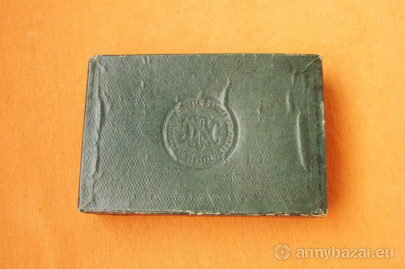 Opis: Przedmiotem sprzedaży jest oryginalne, fabryczne kartonowe pudełko (prawdopodobnie przedwojenne) do belgijskiego pistoletu Browning FN 1922 1910/22. Wymiary: 16,5 cm x 10,5 cm x 3 cm. Stan widoczny na zdjęciach. Cena 280 zł, wysyłka 15 zł (kurier pocztex48 lub do paczkomatu inPost). Nie wysyłam za pobraniem.