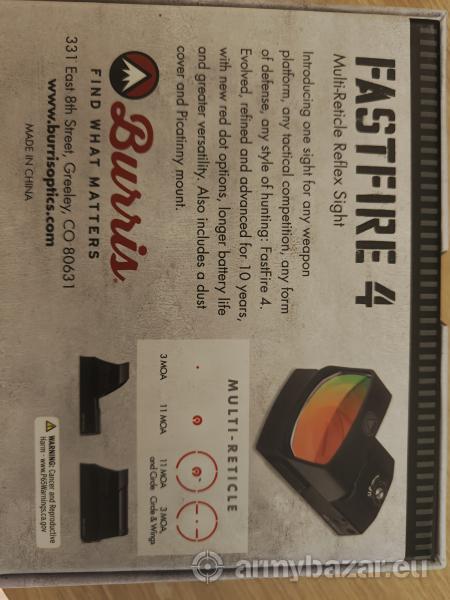 Opis: Kolimator Burris Fastfire 4 na wiecznej gwarancji. Posiada trzy kombinacje wyświetlanych na czerwono znaków. Ze względu na mój astygmatyzm ja niestety tych znaków bez dużego skupienia nie widzę :/