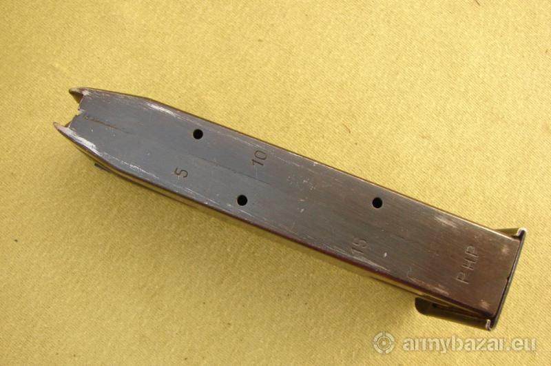 Opis: Przedmiotem sprzedaży jest oryginalny 15-sto nabojowy magazynek do chorwackiego pistoletu PHP MV kal. 9x19 mm Parabellum. Stan widoczny na zdjęciach, sprzedaję prezentowany egzemplarz. Cena 200 zł, wysłka 15 zł do paczkomatu inPost lub kurierem paczka48. Nie wysyłam za pobraniem.