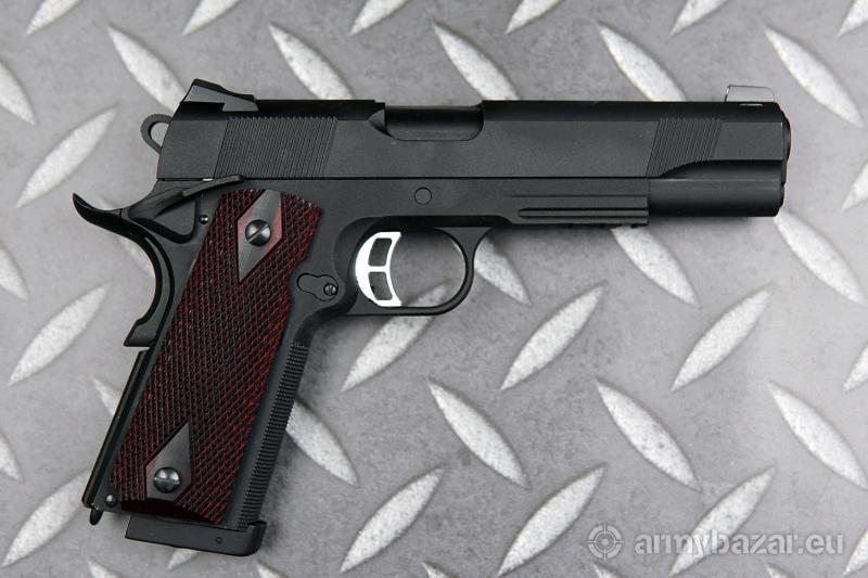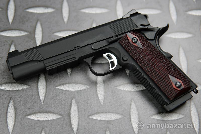 Opis: Produkt oryginalny, do broni palnej. Wersja zdobiona, z nacięciami (moletowanie). Moletowanie wykonane maszynowo i wykończone ręcznie. Dzięki nacięciom chwyt jest pewny, dłoń nie ślizga się. Okładziny są NOWE, DREWNIANE. Olejowane i woskowane, wykonane z najwyższą jakością. Każda para okładzin jest niepowtarzalna, różni się słojami, kolorem, wzorem. Pasują również do kopii Colta/replik ASG/wiatrówek. Doskonale wyglądają na klasycznych ciemnych 1911, jak i na srebrnych czy taktycznych wersjach. Jeśli chcesz, by Twoja broń odróżniała się na tle innych - to coś dla Ciebie. Cena - 129 zł/komplet. Odbiór w Poznaniu lub wysyłka paczkomatem za 11 zł, kurierem za 17 zł.