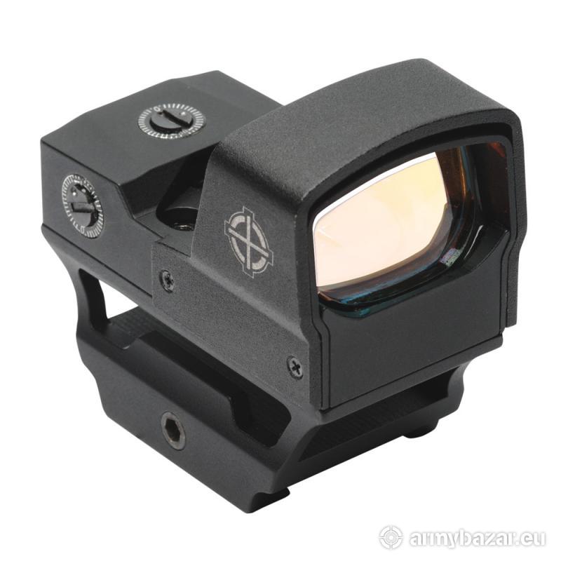 Opis: Krzyż: Kropka (5 MOA), czerwona, 8 ustawień jasności Ustawienie pod wiatr i wysokość: 100 MOA Ustawiwnie parallaxy: 9 m Tworzywo: Aluminium 6061-T6, matowe czarne