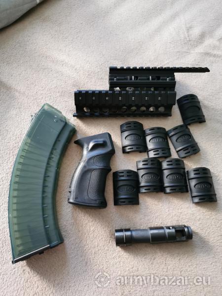 Opis: Witam do sprzedaży mam części do droni palnej AK w skład zestawu wchodzą łoże górne i dolne z nakładkami 250 zł , chwyt pistoletowy 70 zł , kompensator 100 zł, magazynek na 30 pestek 7.62x39--40 zł sprzęt nowy nigdy nie używany