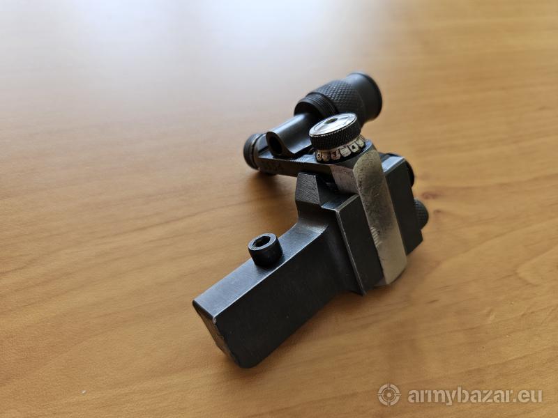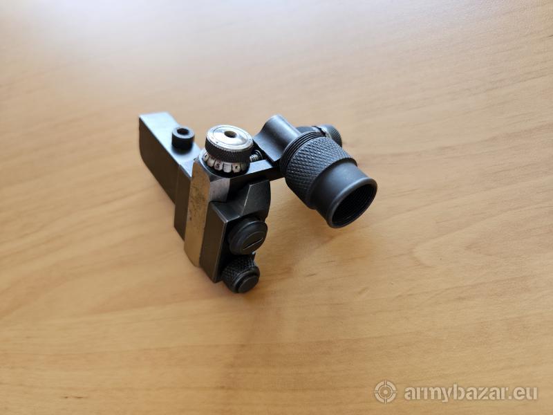 Opis: Sprzedam bardzo rzadki oryginalny diopter boczny dedykowany do radzieckiego olipijskiego karabinka .22LR z lat 50-tych Vostok MC-12. Diopter w doskonałym stanie, regulacje sprawne, solidne wykonanie. Pokrętła chodzą z charakterystycznym klikiem. Bogato sygnowany radzieckimi biciami m.in. Iżewska strzała w trójkącie. Diopter jest na boczną szynę 11mm, więc powinien także pasować do innych karabinków np. z rodziny Toz.