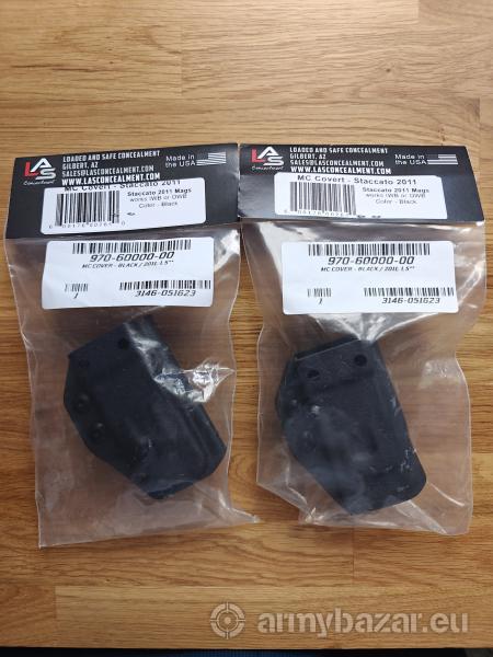 Opis: Dwie oryginalne ładownice magazynków do Staccato 2011 - pasują pewnie do wszystkich magazynków do tej platformy. Producent Las Concealment (Made on U.S.A.). Cena raczej ostateczna. Nieużywane. Polecam, Artur.