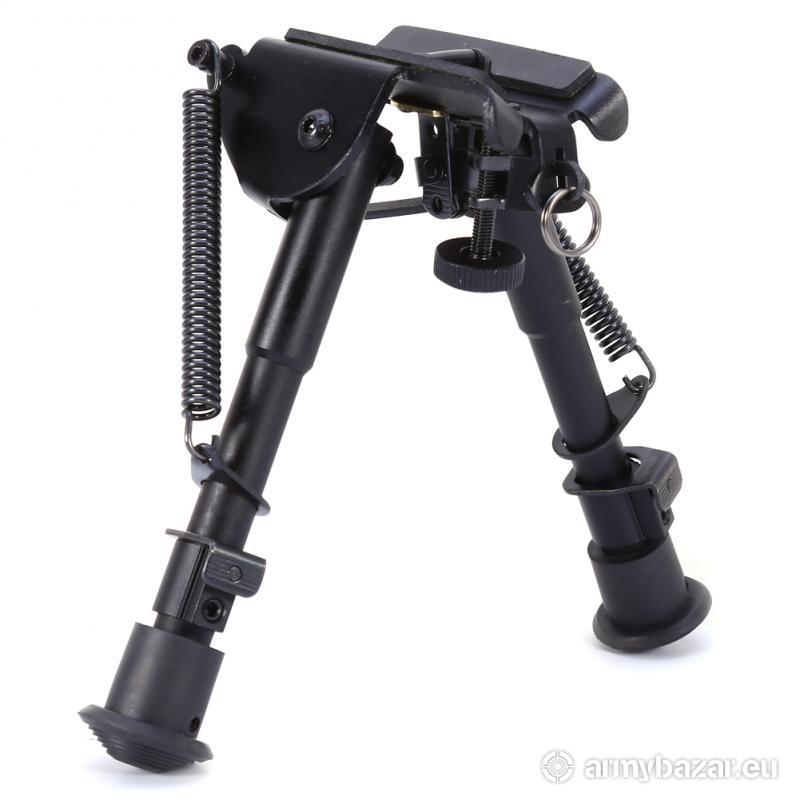 Opis: DWÓJNÓG bipod składany typu HARRIS z płynną regulacją wysokości od 6 do 9 cali + ADAPTER NA SZYNY Picatinny GRATIS. Nasz dwójnóg został wykonany z wytrzymałego a zarazem lekkiego aluminium lotniczego oraz stali dzięki czemu jest bardzo wytrzymały oraz odporny na użytkowanie NAWET W NAJCIĘŻSZYCH WARUNKACH. IDEALNIE SPRAWDZI się na broni strzeleckiej (niezależnie od kalibru) wiatrówce czy też replice ASG. NIEZASTĄPIONY na polowaniu, strzelnicy czy manewrach. Dzięki zastosowanym mocnym sprężynom jest łatwo składalny, a po złożeniu nie ma najmniejszego luzu.