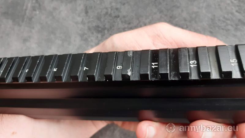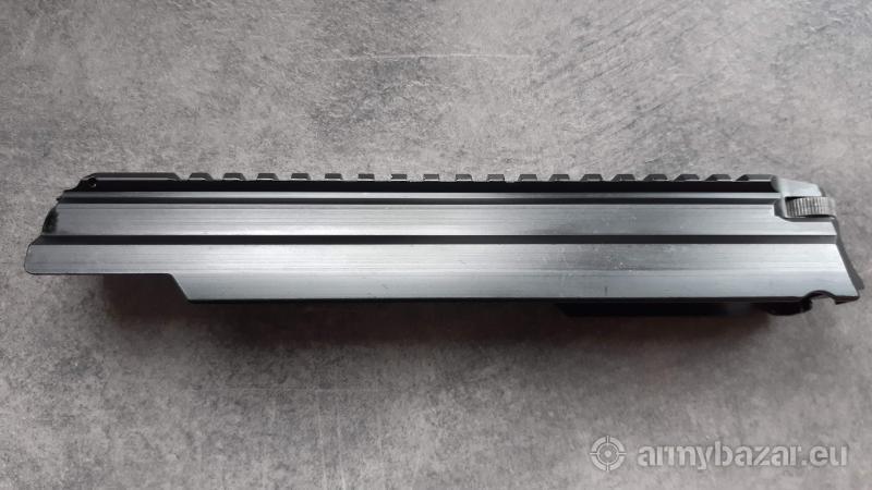 Opis: Jak w tytule. W odróżnieniu od chińskich klonów mocuje się bardzo pewnie i powtarzalnie, optyka zamocowana na niej trzyma zero po demontażu i ponownym montażu osłony. Z przodu wchodzi ciasno w rowek mocowania osłony, a z tyłu w zatrzask, od którego jest następnie dociągana śrubą do komory zamkowej (szczegóły na YT). Stan osłony - w pełni sprawna, stan wizualny to bardzo dobry minus (za małe uszkodzenie szyny pokazane na foto). Dodatkowo - w celu jeszcze ciaśniejszego dopasowania do SVRN MiniJack - w tyle pokrywy nawiercone i nagwintowane otwory i wkręcone w nie dwie śruby M2. Można je oczywiście wykręcić, co przywróci fabryczną długość, lub wkręcić dłuższe / dodać podkładki itd.