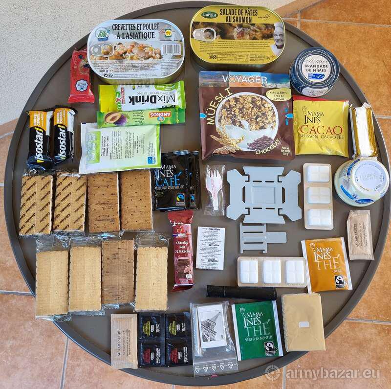 Opis: Cześć czołem głodomory! wybieracie się na długie polowanie to oferta dla was ;) ,Francuskie racje żywnościowe całodobowe. To te najlepsze na rynku. Prawie dwa kilogramy dobra, w tym: dwa posiłki główne, zupa, muesli, czekolada, dwa batony energetyczne, nugat energetyczny, żelek energetyczny, napój izotonik, paka ciasteczek, dwie kawy, dwie herbaty, konserwa mięsna małą, deser (ryż na mleku lub panna cota lub daktyle lub śliwki), kakao, dżem, cukier, kuchenka turytyczna, paliwo suche, zapałki, tabletki do odkażania wody, przyprawy, paczka chusteczek, worek na śmieci, widelczyk.link do strony sklepu poniżęj. https://wunderwaffe.pl/pl/shop/francuska-racja-ywno-ciowa-ca-odobowa~p37195