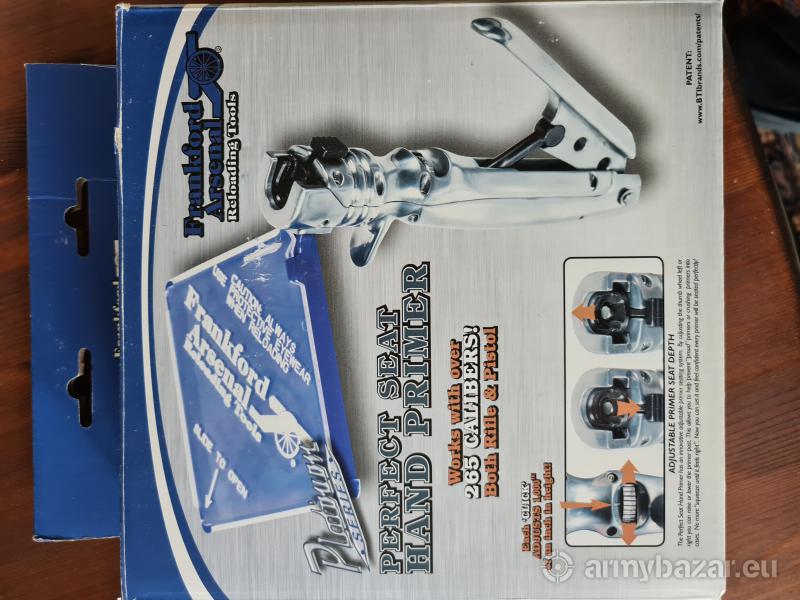 Opis: Jak w temacie, ręczna osadzarka spłonek małych jak i dużych. Komplet fabryczny bez wad ukrytych , przebieg 50szt. Obsługuję 265 kalibry i posiada w komplecie 12 shell holders !! Regulacja głębokości osadzenia spłonki. Cena 400zł. +kw(wybiera sobie kupujący) https://www.brownells.pl/Frankford-Arsenal-Platinum-Series-Perfect-Seat-Hand-Primer-1/pl