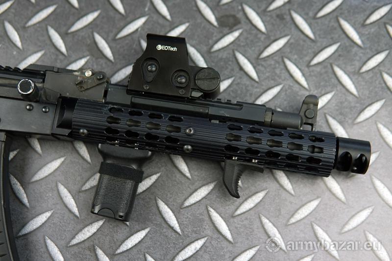Opis: Front RIS VS-25 keymod Zenitco AK74 montaż chwyt ak47 szyna akm Front Zenit do rodziny AK i pochodnych. Lekka i wytrzymała szyna frontowa do AK, wykonana w całości z aluminium lotniczego na precyzyjnych maszynach CNC. Szyna mocowana jest tak, jak standardowe drewno/plastik i pozwala na wyposażenie repliki w akcesoria w standardzie Keymod (szyny RIS, rączki taktyczne, celowniki laserowe, kolimatory itp). Zaprojektowane pod AK-104, 105, 106, ale pasuje również do AK, AKM, AK-74 i pochodnych, prawdopodobnie również do Sajga itp. Stan idealny, gotowe do montażu, w zestawie wszystkie obejmy i śruby. Cena - 349 zł. Odbiór w Poznaniu lub wysyłka.