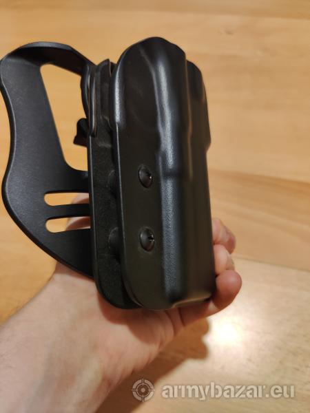 Opis: Sprzedam świetną kaburę bladetech na płetwie. Glock siedzi aż miło, nie wypada, a wyjmowanie przebiega płynnie. Chętnym mogę wysłać filmik jak ta kabura trzyma. W zestawie oczywiście jest również płetwa