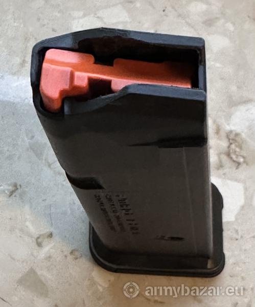 Opis: Dzień dobry, mam do sprzedania15-nabojowy, polimerowy magazynek do pistoletów Glock, na amunicję 9x19mm. Kontrastowy, pomarańczowy podajnik magazynka, ułatwiający szybką kontrolę stanu załadowania. Kompatybilny z obustronnymi zwalniaczami magazynka. Wytrzymała polimerowa konstrukcja. Zabezpieczony przed przechylaniem popychacz. Stalowa, nierdzewna sprężyna. Łatwo zdejmowana stopka magazynka z panelem ułatwiającym oznaczenie. Okienko do kontroli pełnego stanu załadowania magazynka. Pojemność: 15 naboi (dwurzędowy). 6O34OO49O