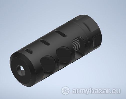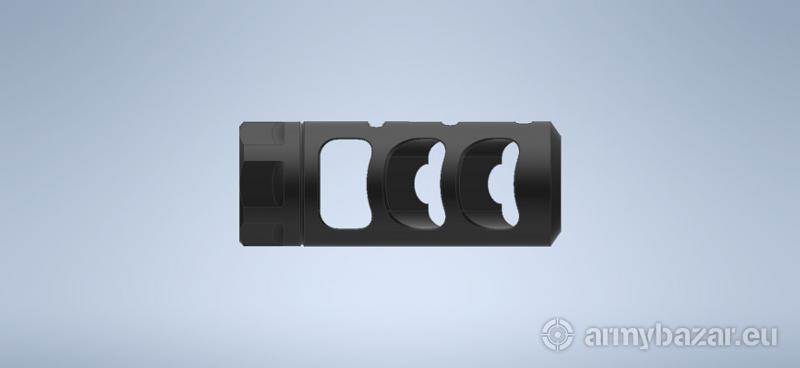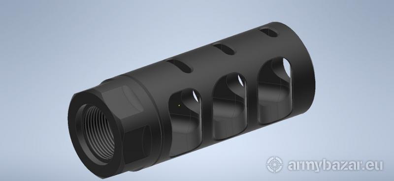 Opis: Kompaktowa konstrukcja wykonana ze stali chromowo - molimbdenowej z trzema komorami rozpraszającymi gazy prochowe pod kątem 55° do tyłu. Na górnej powierzchni kompensatora wykonane są otwory przez które jest odprowadzana część gazów prochowych co w znacznym stopniu osłabia podrzut broni. Dobrze sprawdzi się w karabinach w których jest kładziony duży nacisk na precyzję strzału. Cechy i specyfikacja: Zasada działania: akcyjo-reakcyjna Konstrukcja: 3 komory Materiał: Stal Cr-Mo 4140 Wykończenie: oksyda lub cerakote (+40 zł) Kaliber: od 223 Rem. do 338 LM (na zamówienie) Gwint: M 18 x 1