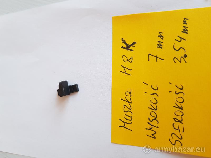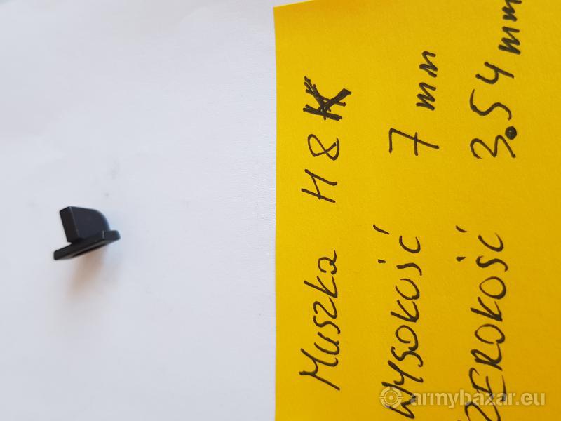 Opis: Muszka do Heckler Koch H&K USP WYsokość = 7,0 mm Szerokość = 3,54 mm Pasuje do HK USP HK USP Expert HK USP Elite HK P8 HK P8A1