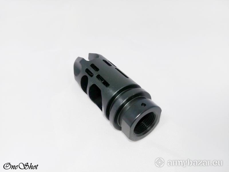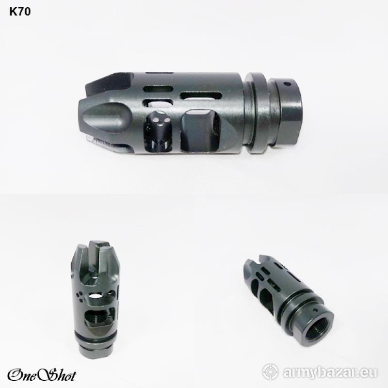 Opis: KOMPENSATOR K70 do AR-15 / M4 / M16 : kompaktowe wymiary połączenie kompensatora odrzutu, hamulca wylotowego oraz tłumika płomienia dwie komory skutecznie redukujące odrzut broni 6 podłużnych otworów stabilizujących lufę i obniżających uczucie podrzutu broni zęby na froncie redukujące ogień wylotowy wysoka skuteczność działania azotowana na czarno powłoka, wytrzymalsza i odporniejsza na wypalenie od oksydy DANE TECHNICZNE: Materiał: stal 4140 Powłoka: azotowana QPQ Waga: 67 g Wymiary: 56 mm / 22 mm Gwint: 1/2 x 28 Kaliber: .22 / .223 WYSTAWIAMY FAKTURY VAT / PARAGON !