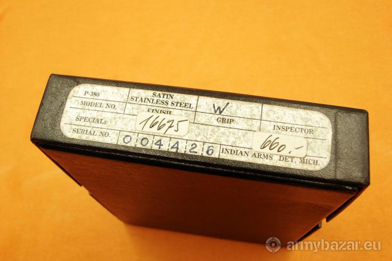 Opis: Przedmiotem ogłoszenia jest oryginalne amerykańskie fabryczne pudełko do pistoletu INDIAN ARMS P-380 kal. 9x17 mm Browning 380 acp. Stan widoczny na zdjęciach, sprzedaję prezentowany egzemplarz. (BF-81) Cena 210 zł, wysyłka 18 zł paczkomat inPost lub 15 zł kurierem pocztex48. Nie wysyłam za pobraniem.