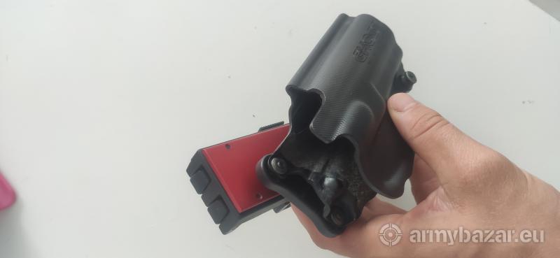Opis: Witam, Sprzedam używaną kaburę Ghost 3G elite holster do ipsc. Najnowszy model. Kabura w bardzo dobrym stanie, brakuje jednej śrubki do ustawiania retencji (widać na zdjęciu) - ja strzelałem bez niej, ale można ją dokupić w każdym sklepie budowlanym. Nowa kosztuje 390 zł, oddam za 300 zł z przesyłką po mojej stronie.