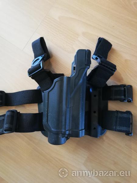 Opis: Kabura udowa do glocka firmy blackhawk z wejściem na latarkę tlr1 lub tlr2