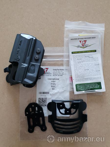Opis: Na sprzedaż kabura w idealny stanie, pełen zestaw z instrukcją, kluczem do regulacji oraz wymiennymi mocowaniami. Comp-Tac International dla H&K P30L dla osoby praworęcznej.