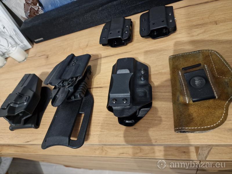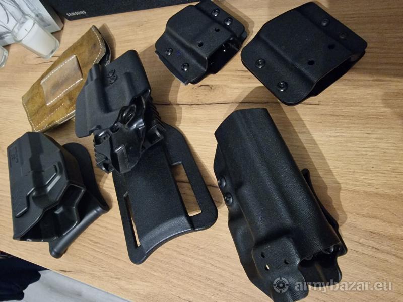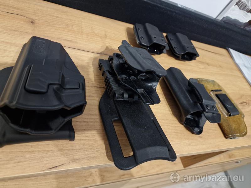 Opis: Witam, sprzedam zestaw widoczny na foto, kabury i ładownice do pistoli Glock. U mnie pasowało do glock 17 5 gen, glock 44, glock 19x pasują do większości glocków.. stan bdb.