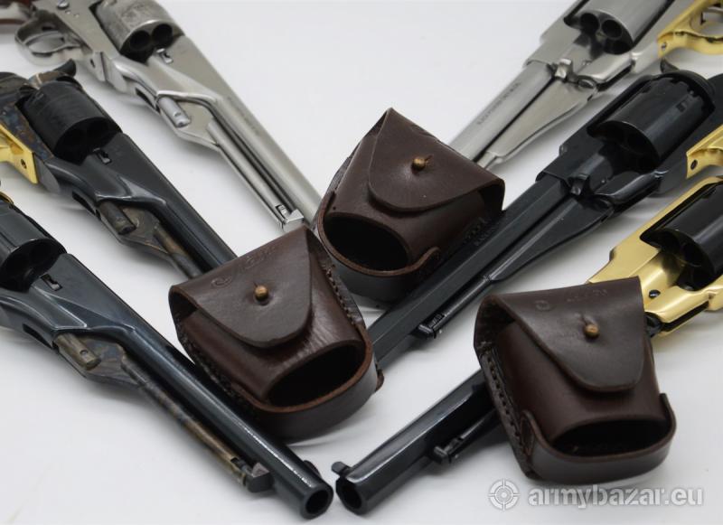 Opis: NOWE Kabury do bębnów rewolwerów czarnoprochowych. Zakładane na pas. Naturalna skóra. Najwyższa jakość. POLECAM