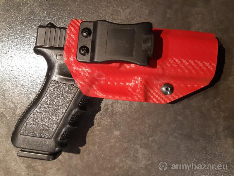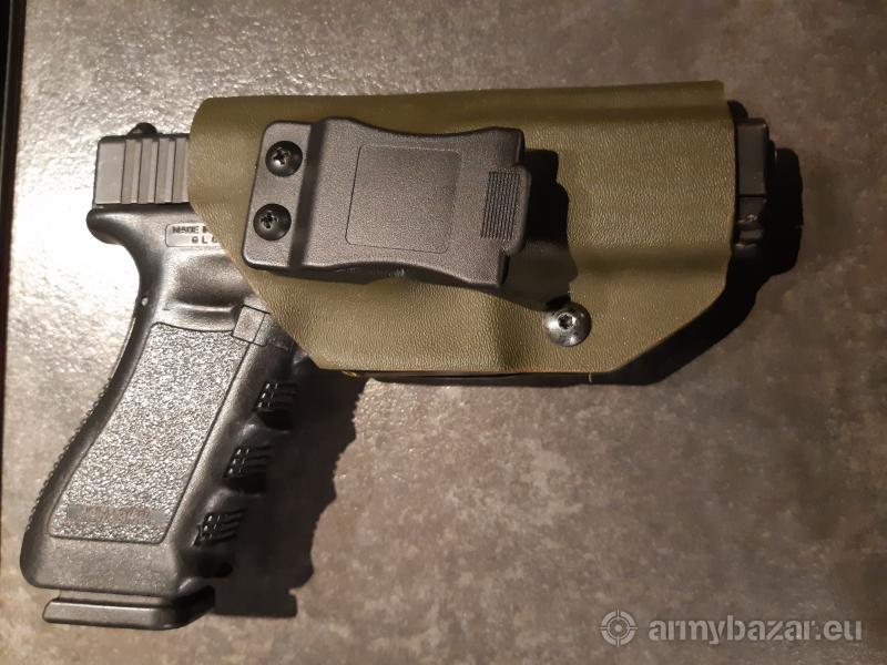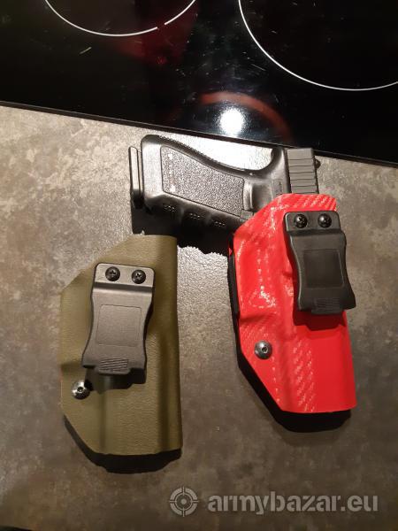 Opis: Kabura wewnętrzna Kydex IWB do skrytego noszenia jednostek broni Glock17/19. Wykonana z kydexu w kolorze oliwkowym, Zamocowanie typu IWI Quick Clip. kontakt: iwantomek1977@gmail.com