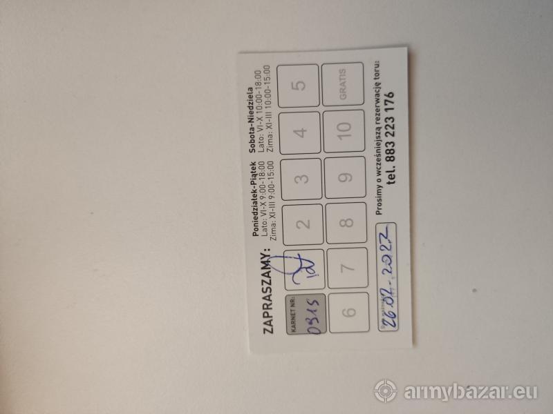 Opis: Sprzedam karnet do Bochni ważny do 26.02.2022 Wersja srebrny - osie 1-16 zużyte 1(sic!) wejście. Do wykorzystania pozostało 10, z tego co wiem idąc z kimś można na raz zdjąć np dwa wejścia. https://www.mcs.org.pl/strzelnica-oferta-rezerwacja/#karnety-strzeleckie Cena: 300 zł Lokalizacja: Kraków Opcje odbioru/dostawy: - osobisty, - paczkomat, - list polecony, Zdjęcia: https://imgur.com/a/66s37iv