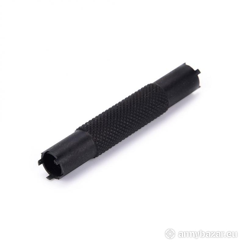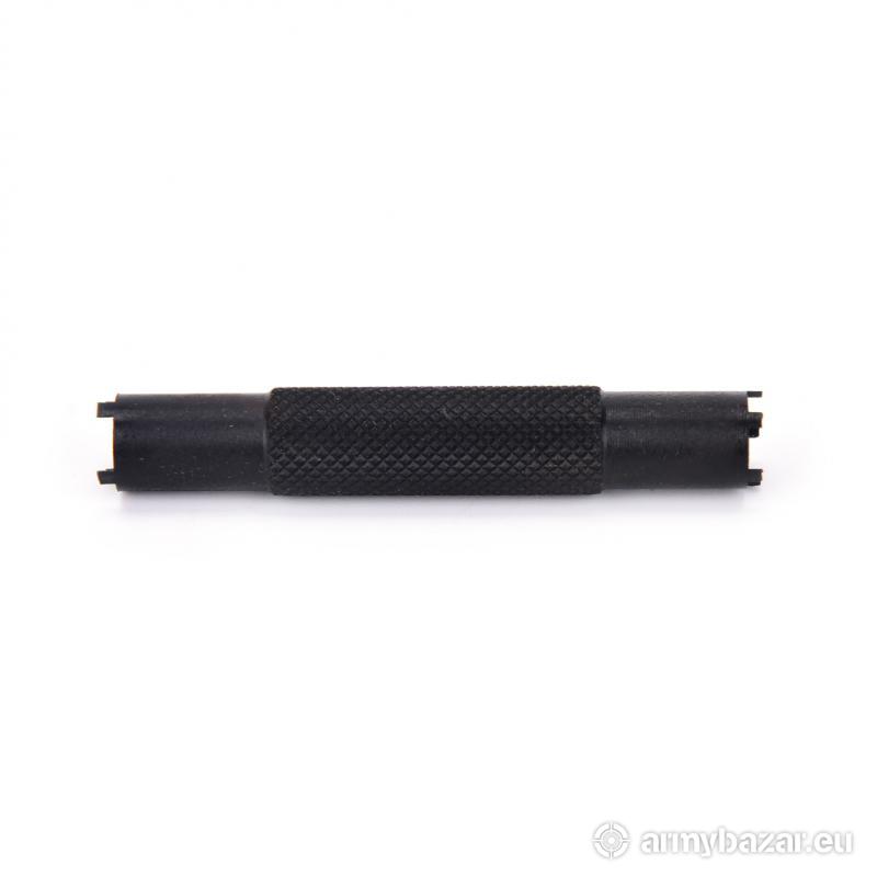 Opis: Klucz, przyrząd do regulacji muszki w karabinkach AR-15 / M4 / M16 i innych opartych na tym systemie. Przyrząd służy do płynnej regulacji muszki w pionie. Nasze klucze wykonane są z dobrej jakościowo STALI, fosforanowanej na kolor czarny. Klucz jest obustronny, 4 oraz 5 zębowy. DŁUGOŚĆ: 73 mm WAGA: 40 g