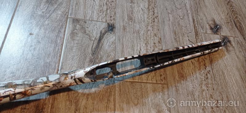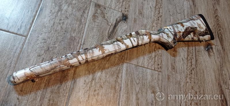 Opis: Sprzedam syntetyka osadę do Remingtona rozstaw śrub 21 cm w kamuflarzu zimowym w realu wyglada super. tel 5 trzy 5 603 6 zero 2