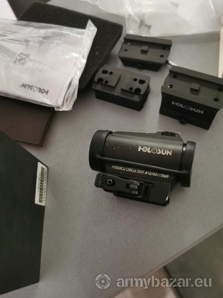 Opis: Używany kolimator holosun hs 503cu z solarem i dodatkowym szybkim montażem. Sprawny, delikatne ślady użytkowania, znak celowniczy podobny do eotecha. Cena plus przesyłka inpost
