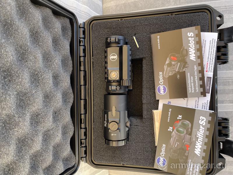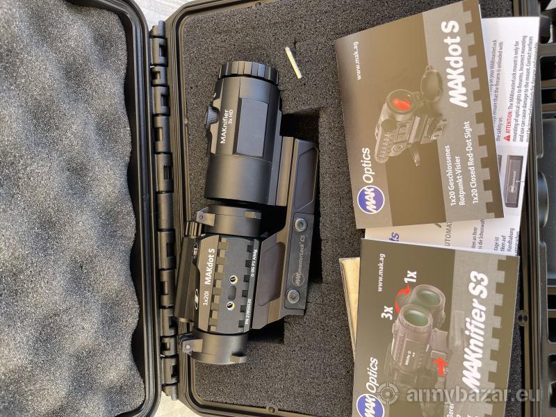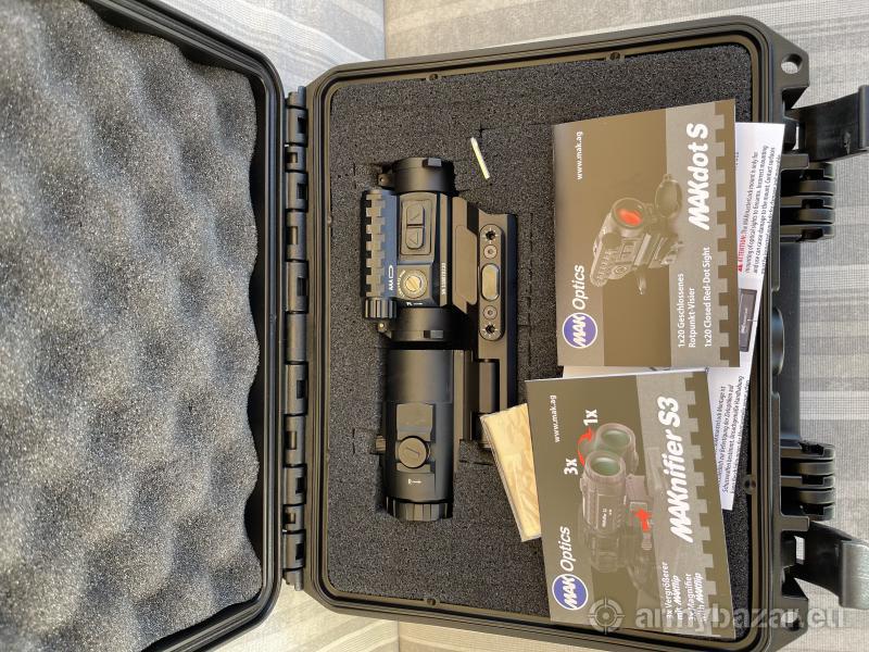 Opis: Kolimator MAKdot S 1x20i + powiększalnik MAKnifier S3 to wysokiej jakości celownik z bardzo wyraźną kropką celowniczą 2 MOA. W zestawie z powiększalnikiem 3x oraz montażem na szynę Picatinny. Zapewnia bardzo wyraźny obraz, dodatkowo niezniekształcony i jasny. Obudowa wykonana z aluminium, całkowicie wodoodporny. Posiada szerokie pole widzenia oraz jest odporny na wstrząsy. Zasilany zwykłą baterią AAA 1,5 V z możliwością szybkiej wymiany. Opatentowany system combo na szynę Picatinny do montażu kolimatora MAKdot S 1×20 wraz z powiększalnikiem MAKnifire S3 na montażu monoblokowym, szybkozdejmowalnym MAKmasterLock. https://www.youtube.com/watch?v=l-jVGfJ7L6Q