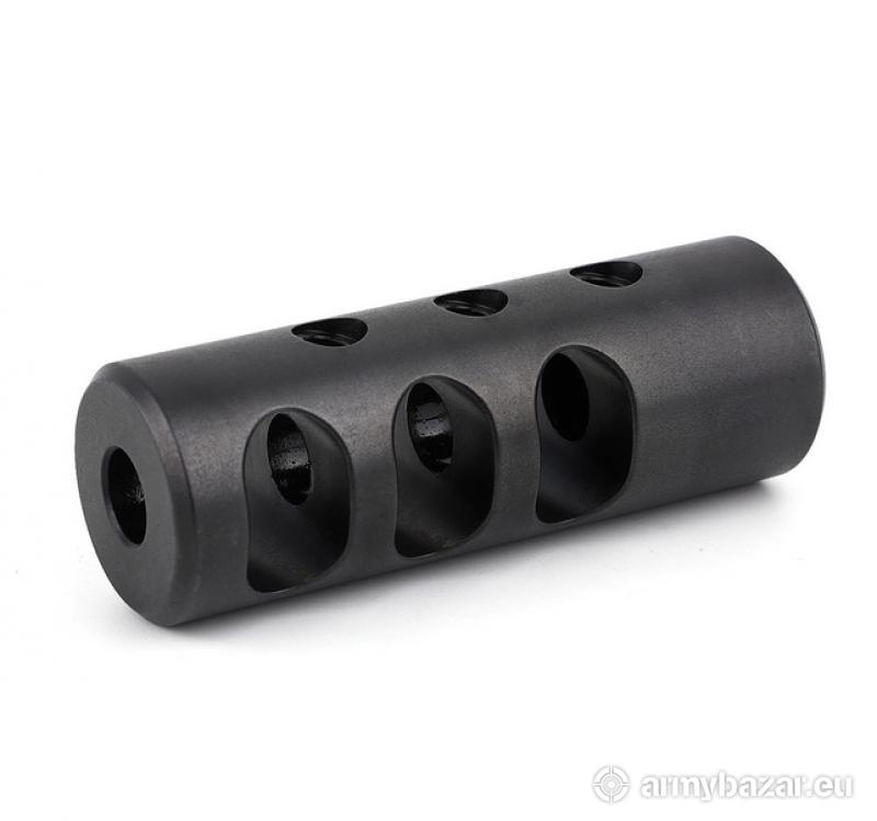 Opis: KOMPENSATOR K03-15 do karabinów Sauer, Blaser R8, Merkel oraz innych z gwintem 15x1: trzy komory skutecznie redukujące odrzut broni, stabilizujące lufę i zmniejszające efekt podrzutu broni trzy otwory wylotowe dla lepszej stabilizacji lufy oraz zmniejszenia efektu podrzutu broni azotowana na czarno powłoka, wytrzymalsza i odporniejsza na wypalenie od oksydy wysoka skuteczność działania wykonany na maszynach CNC DANE TECHNICZNE: Materiał: stal 4140 Powłoka: azotowana QPQ Waga: 113 g Wymiary: 70 mm / 23 mm Gwint: 15 x 1 Kaliber: .308 / 7.62. W ZESTAWIE nakrętka i podkładka.