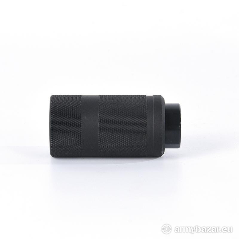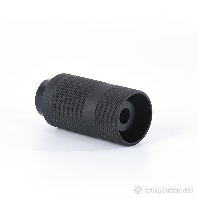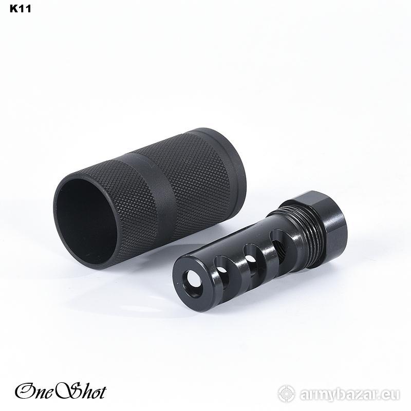 Opis: KOMPENSATOR K11 do AR-15 / M4 / M16: urządzenie wylotowe podwójnego zastosowania : kompensator odrzutu oraz tłumik płomienia redukuje nieprzyjemny dla strzelca dźwięk wystrzału kierując go ku wylotowi lufy, dwuczęściowa konstrukcja: stal oraz aluminiowa osłona, trzy komory skutecznie redukujące odrzut broni, wysoka skuteczność działania, azotowana na czarno powłoka, wytrzymalsza i odporniejsza na wypalenie od oksydy, Materiał: stal 4140 / aluminium fosforanowane Powłoka: azotowana QPQ Waga: 68 g / 106 g Wymiary: 65 mm / 32 mm Gwint: 1/2 x 28 Kaliber: .22 / .223 W ZESTAWIE nakrętka i podkładka.