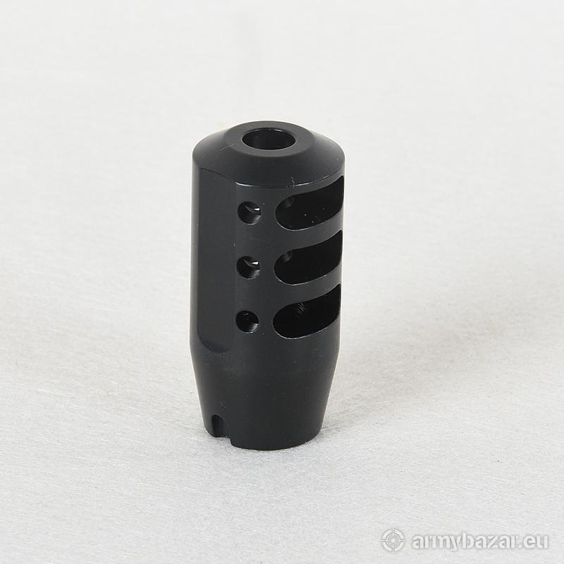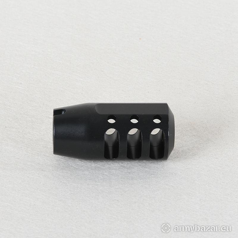 Opis: KOMPENSATOR K126 do kbk AK / AKMS / M70 / SAJGA i innych: trzy komory skutecznie redukujące odrzut broni, trzy otwory stabilizujące lufę i zmniejszające efekt podrzutu broni, wcięcie pod kołek stabilizujący, azotowana na czarno powłoka, wytrzymalsza i odporniejsza na wypalenie od oksydy, wykonany z WYSOKIEJ jakości stali na maszynach CNC, wysoka skuteczność działania. DANE TECHNICZNE: Materiał: stal 4140 Powłoka: azotowana QPQ Waga: 104 g Wymiary: 54 mm / 25 mm Gwint: 14x1 LEWY Kaliber: 7.62x39 W ZESTAWIE nakrętka i podkładka.