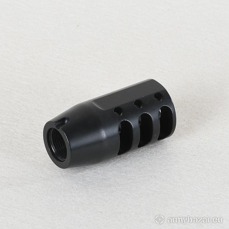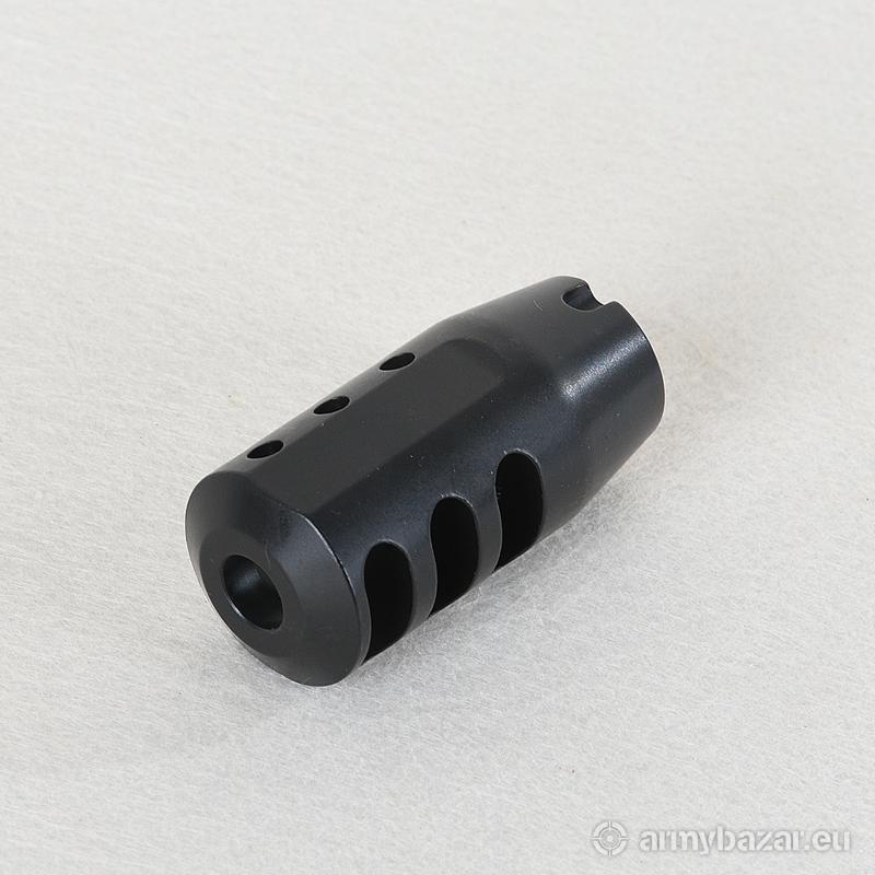 Opis: KOMPENSATOR K126 do kbk AK / AKMS / M70 / SAJGA i innych: trzy komory skutecznie redukujące odrzut broni, trzy otwory stabilizujące lufę i zmniejszające efekt podrzutu broni, wcięcie pod kołek stabilizujący, azotowana na czarno powłoka, wytrzymalsza i odporniejsza na wypalenie od oksydy, wykonany z WYSOKIEJ jakości stali na maszynach CNC, wysoka skuteczność działania. DANE TECHNICZNE: Materiał: stal 4140 Powłoka: azotowana QPQ Waga: 104 g Wymiary: 54 mm / 25 mm Gwint: 14x1 LEWY Kaliber: 7.62x39 W ZESTAWIE nakrętka i podkładka.