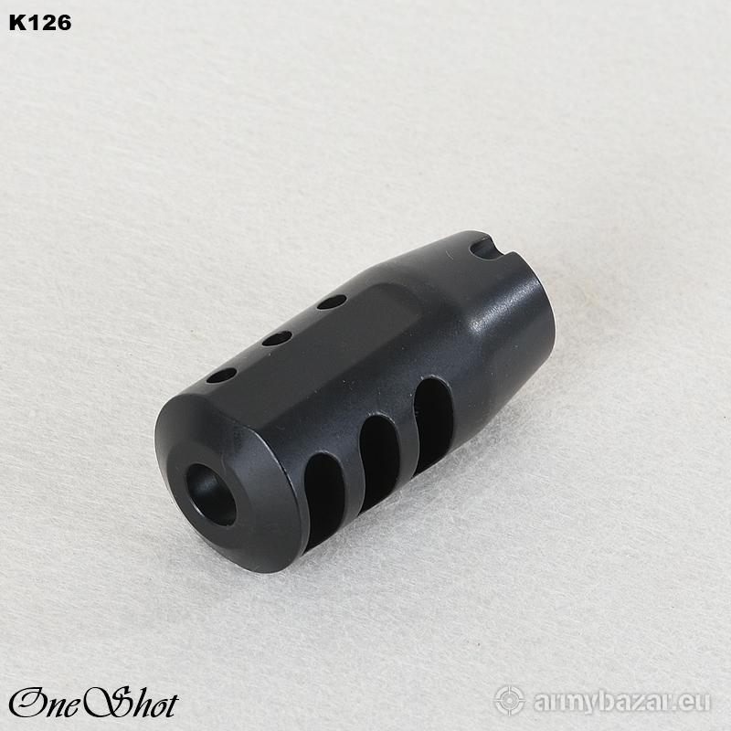Opis: KOMPENSATOR K126 do kbk AK / AKMS / M70 / SAJGA i innych: trzy komory skutecznie redukujące odrzut broni, trzy otwory stabilizujące lufę i zmniejszające efekt podrzutu broni, wcięcie pod kołek stabilizujący, azotowana na czarno powłoka, wytrzymalsza i odporniejsza na wypalenie od oksydy, wykonany z WYSOKIEJ jakości stali na maszynach CNC, wysoka skuteczność działania, W NASZEJ OFERCIE POSIADAMY TAKŻE INNE MODELE KOMPENSATORÓW DO KBK AK a TAKŻE CZ / VZ. 58. DANE TECHNICZNE: Materiał: stal 4140 Powłoka: azotowana QPQ Waga: 104 g Wymiary: 54 mm / 25 mm Gwint: 14x1 LEWY Kaliber: 7.62x39 W ZESTAWIE nakrętka i podkładka.