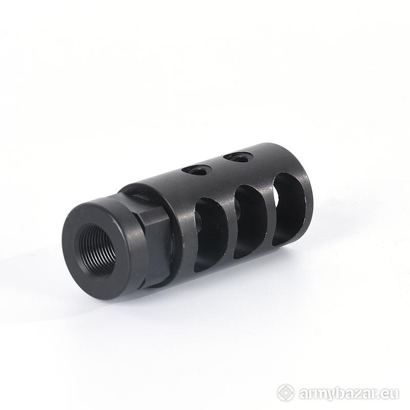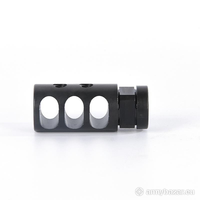 Opis: Kompensator K53 do karabinu AK / AKMS / M70 / SAJGA i innych: trzy komory skutecznie redukujące odrzut broni dwa otwory stabilizujące lufę i zmniejszające efekt podrzutu broni wytrzymała i odporna powłoka OKSYDOWANA wykonany z WYSOKIEJ jakości stali na maszynach CNC wysoka skuteczność działania DANE TECHNICZNE: Materiał: stal Powłoka: oksydowana Waga: 99 g Wymiary: 60 mm / 25 mm Gwint: 14 x 1 LEWY Kaliber: 7.62 x 39