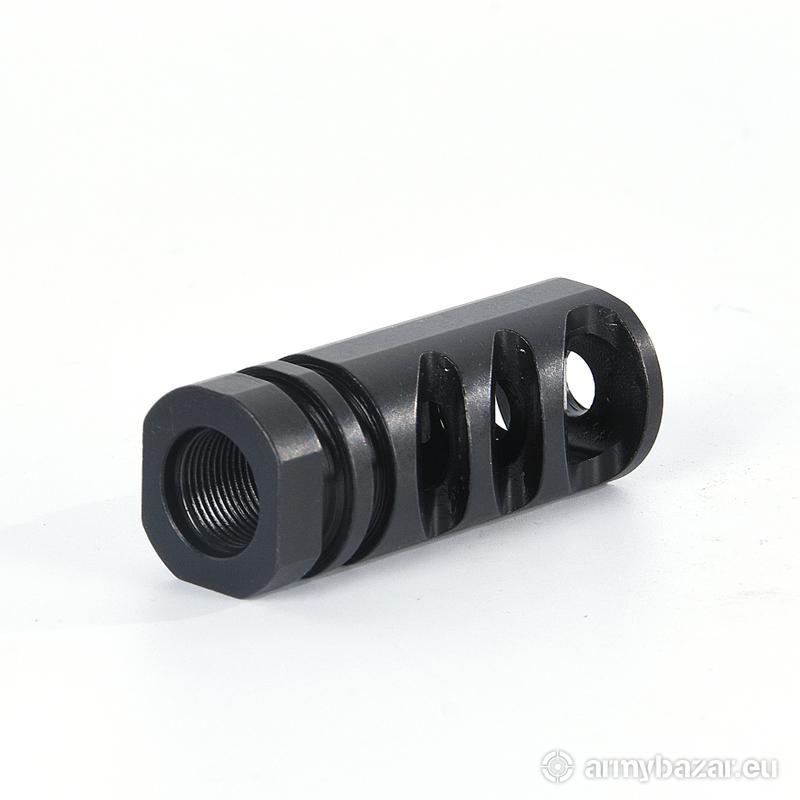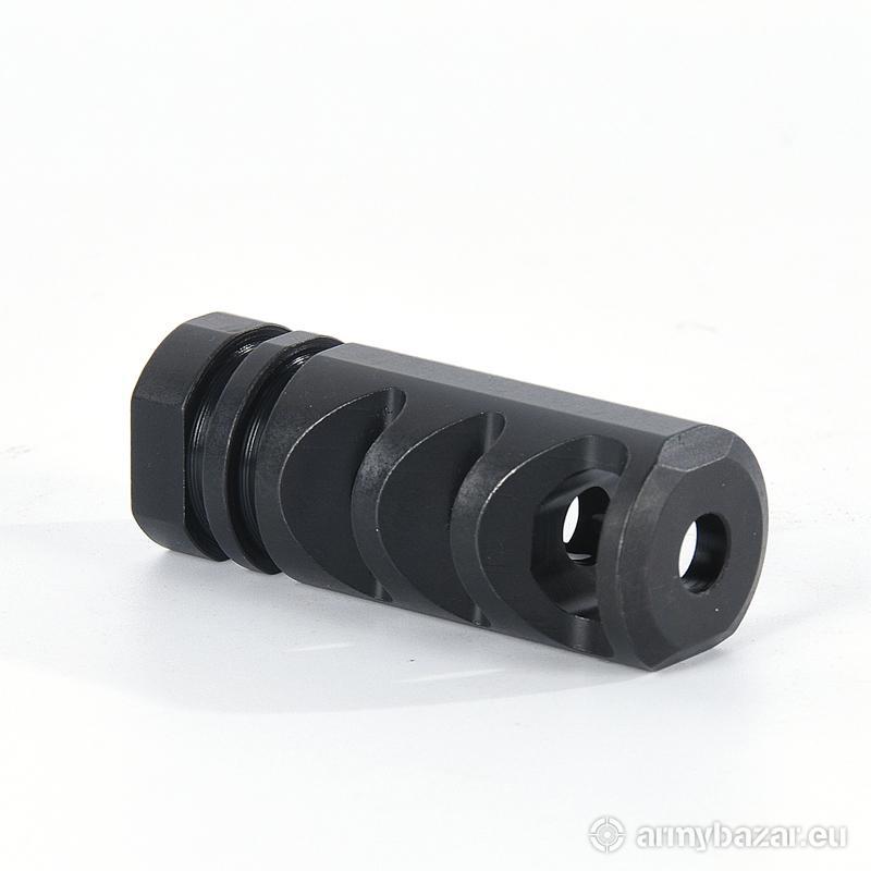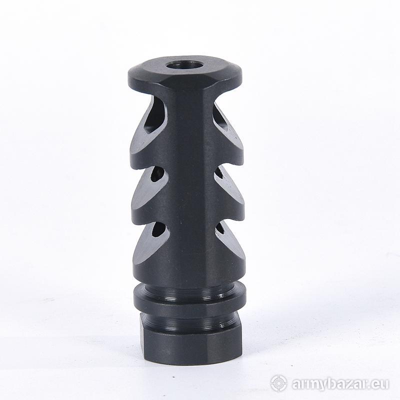 Opis: KOMPENSATOR K67 do karabinów AK / AKM / AKMS: trzy kierunkowe komory skutecznie redukujące odrzut broni, stabilizujące lufę i zmniejszające efekt podrzutu broni, azotowana na czarno powłoka, wytrzymalsza i odporniejsza na wypalenie od oksydy, wysoka skuteczność działania, wykonany na maszynach CNC, DANE TECHNICZNE: Materiał: stal 4140 Powłoka: azotowana QPQ Waga: 95 g Wymiary: 57 mm / 25 mm Gwint: 18x1 PRAWY Kaliber: 7,62x39. W ZESTAWIE nakrętka i podkładka.