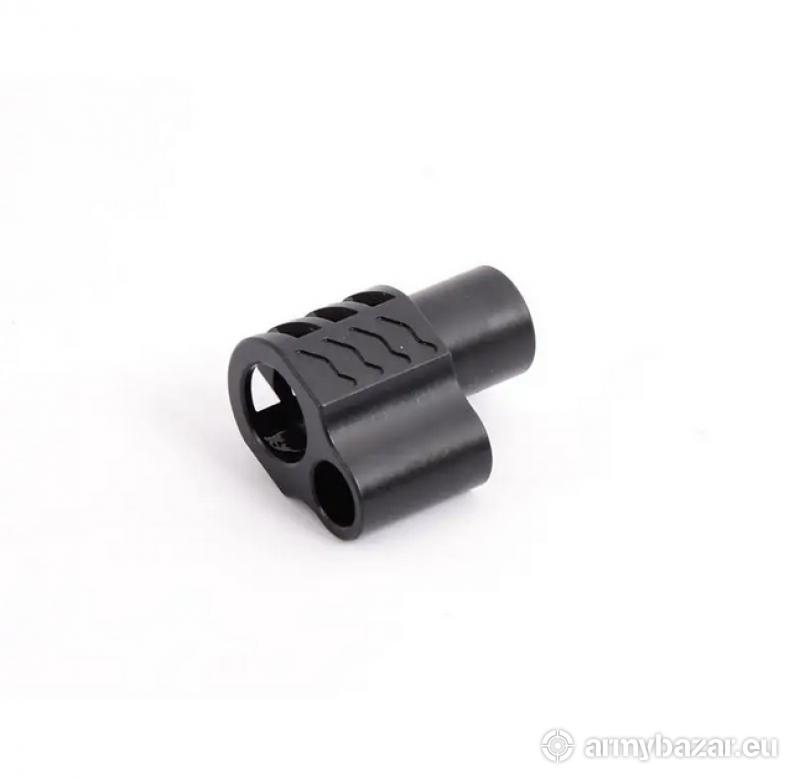 Opis: Kompensator K74 PUNISHER do Colt 1911 i pochodnych: pasuje do Coltów z lufami długości 5” ( i pochodnych ), przystosowany do kalibrów .45 ACP, .38 oraz 9 mm, trzy otwory stabilizujące broń podczas strzału i zmniejszające efekt podrzutu broni, wytrzymała i odporna OKSYDOWANA powłoka, wykonany z WYSOKIEJ jakości stali na maszynach CNC, wysoka skuteczność działania, kompensator przeznaczony jest do BRONI PALNEJ. DANE TECHNICZNE: Materiał: stal Powłoka: oksydowana Waga: 68 g Wymiary: 25 mm / 23 mm Pasuje do: Colt 1911 oraz pochodne Kaliber: .45 ACP, .38, 9 mm