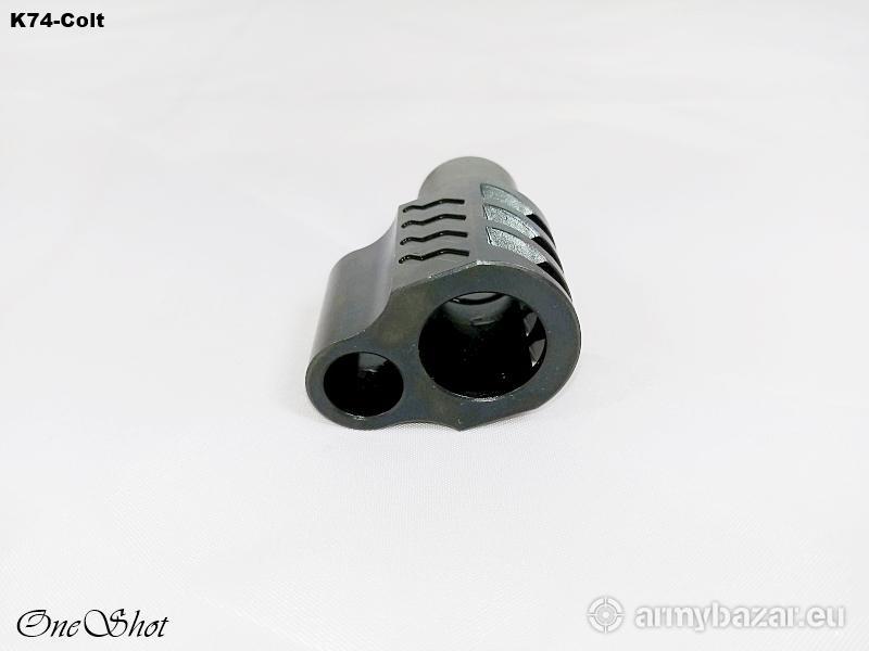Opis: Kompensator K74 PUNISHER do Colt 1911 i pochodnych: pasuje do Coltów z lufami długości 5” ( i pochodnych ), przystosowany do kalibrów .45 ACP, .38 oraz 9 mm, trzy otwory stabilizujące broń podczas strzału i zmniejszające efekt podrzutu broni, wytrzymała i odporna OKSYDOWANA powłoka, wykonany z WYSOKIEJ jakości stali na maszynach CNC, wysoka skuteczność działania, kompensator przeznaczony jest do BRONI PALNEJ. DANE TECHNICZNE: Materiał: stal Powłoka: oksydowana Waga: 68 g Wymiary: 25 mm / 23 mm Pasuje do: Colt 1911 oraz pochodne Kaliber: .45 ACP, .38, 9 mm WYSTAWIAMY FAKTURY VAT / PARAGON !
