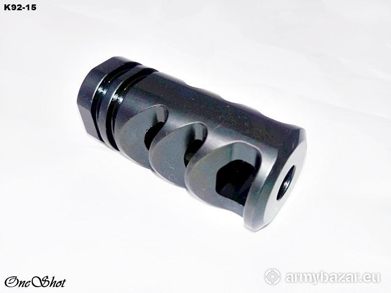 Opis: KOMPENSATOR K92-15 do karabinów Sauer, Blaser R8, Merkel oraz innych z gwintem 15x1: trzy kierunkowe komory skutecznie redukujące odrzut broni, stabilizujące lufę i zmniejszające efekt podrzutu broni, azotowana na czarno powłoka, wytrzymalsza i odporniejsza na wypalenie od oksydy, wysoka skuteczność działania, wykonany na maszynach CNC, DANE TECHNICZNE: Materiał: stal 4140 Powłoka: azotowana QPQ Waga: 101 g Wymiary: 57 mm / 25 mm Gwint: 15x1 PRAWY Kaliber: .308 / 7.62 W ZESTAWIE nakrętka i podkładka. Wystawiamy faktury VAT !