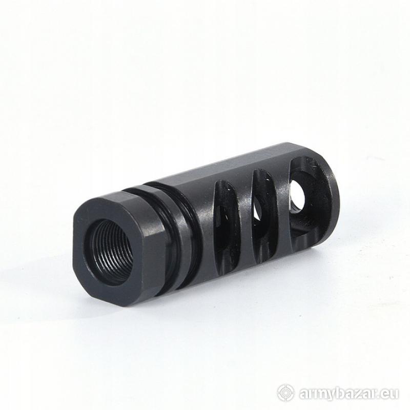 Opis: KOMPENSATOR K92-15 do karabinów Sauer, Blaser R8, Merkel oraz innych z gwintem 15x1: trzy kierunkowe komory skutecznie redukujące odrzut broni, stabilizujące lufę i zmniejszające efekt podrzutu broni, azotowana na czarno powłoka, wytrzymalsza i odporniejsza na wypalenie od oksydy, wysoka skuteczność działania, wykonany na maszynach CNC, DANE TECHNICZNE: Materiał: stal 4140 Powłoka: azotowana QPQ Waga: 101 g Wymiary: 57 mm / 25 mm Gwint: 15x1 PRAWY Kaliber: .308 / 7.62 W ZESTAWIE nakrętka i podkładka.