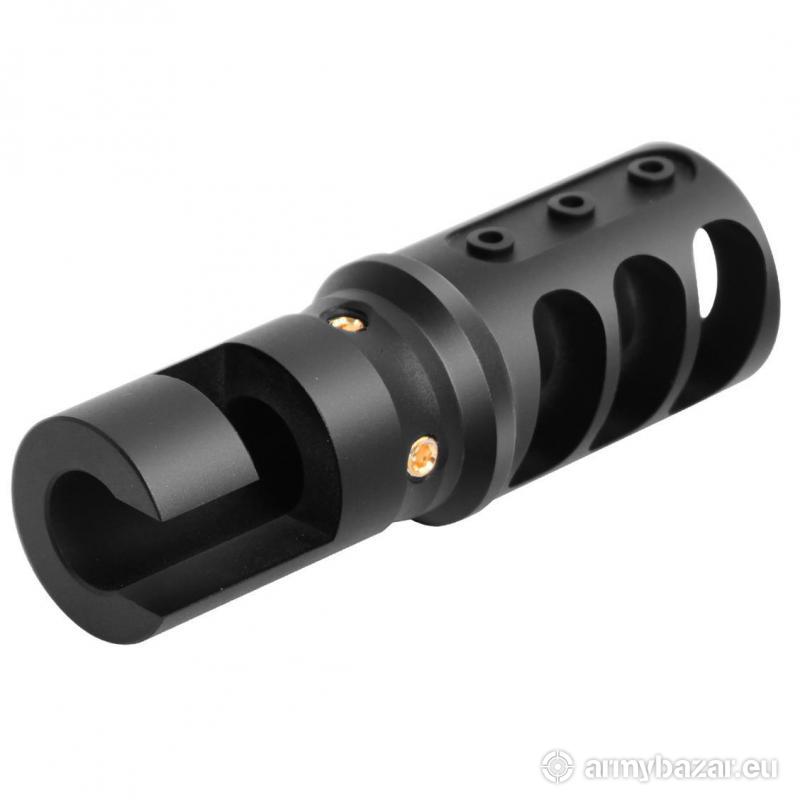 Opis: KOMPENSATOR do CARSKIEGO Mosina wz 1891 : trzy komory skutecznie redukujące odrzut broni, trzy otwory stabilizujące lufę i zmniejszające efekt podrzutu broni, trzy frontalne otwory odprowadzające płomień wylotowy wytrzymała i odporna powłoka OKSYDOWANA wykonany na maszynach CNC wysoka skuteczność działania łatwy i szybki sposób montażu DANE TECHNICZNE: Materiał: stal Powłoka: OKSYDA Waga: 220 g Wymiary: 100 mm / 25 mm Kaliber: 7.62x54R