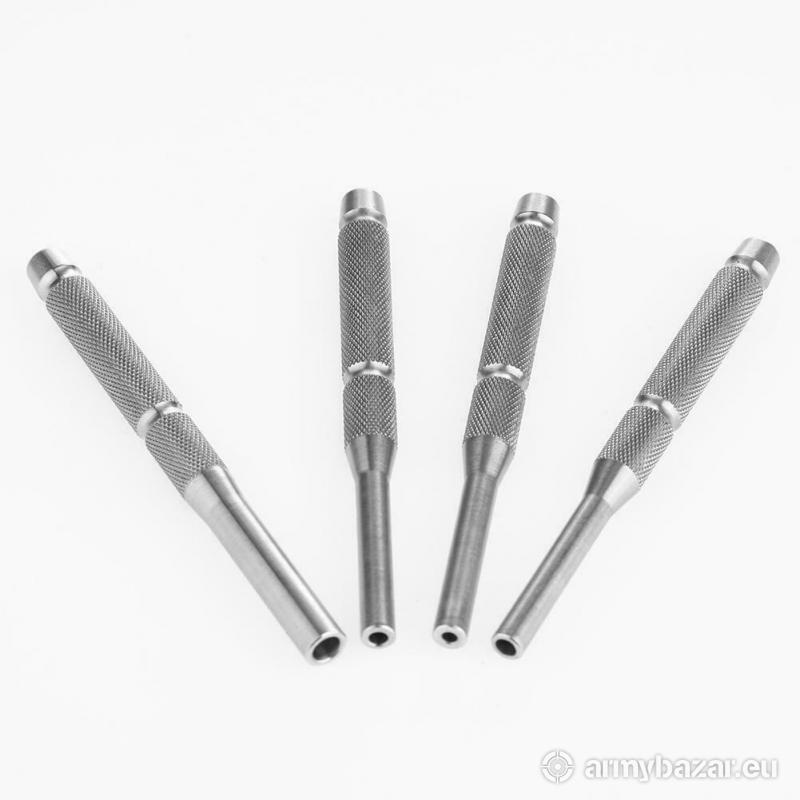 Opis: Komplet 4 szt. WYBIJAKÓW do broni. Wykonane z wytrzymałej i odpornej STALI NIERDZEWNEJ, ryflowane dla lepszego uchwytu.Przeznaczone do wybijanie różnych pinów itd. W SKŁAD ZESTAWU WCHODZI: 3 WYBJAKI 4 mm o różnych średnicach wewnętrznych 1 WYBIJAK 5 mm Długość: 70 mm